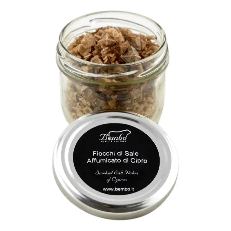 Un sale straordinario nella sua essenza, profumato ma estremamente delicato grazie all’affumicatura curata in ogni dettaglio, ottenuta bruciando esclusivamente legno di faggio, legni aromatici selezionati. La forma piramidale è data dall’azione del sole e del vento, è ricco di elementi minerali. I Fiocchi di Sale di Cipro Affumicato sono apprezzati per la loro consistenza croccante e il loro gusto intenso, che permette di usarli non solo come ingrediente durante la cottura, ma anche come finitura decorativa e saporita sui piatti pronti per essere serviti.