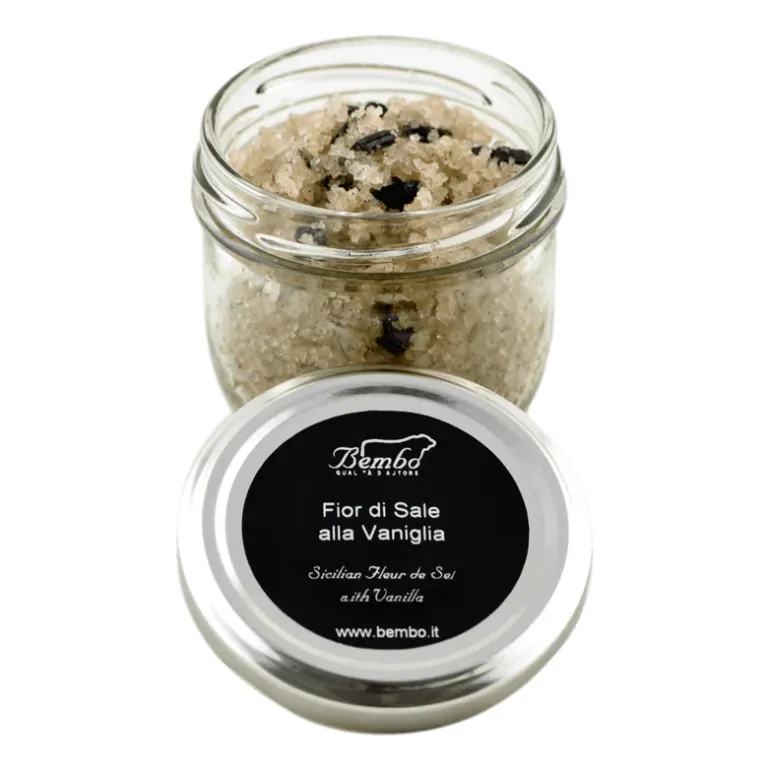 Il Sale Marino del Mediterraneo è un sale integrale ricco di elementi naturali specialmente potassio e magnesio ma povero di sodio. In questo prodotto gourmand, il Sale Marino del Mediterraneo è stato aromatizzato con baccelli freschi di Vaniglia Tahitensis.