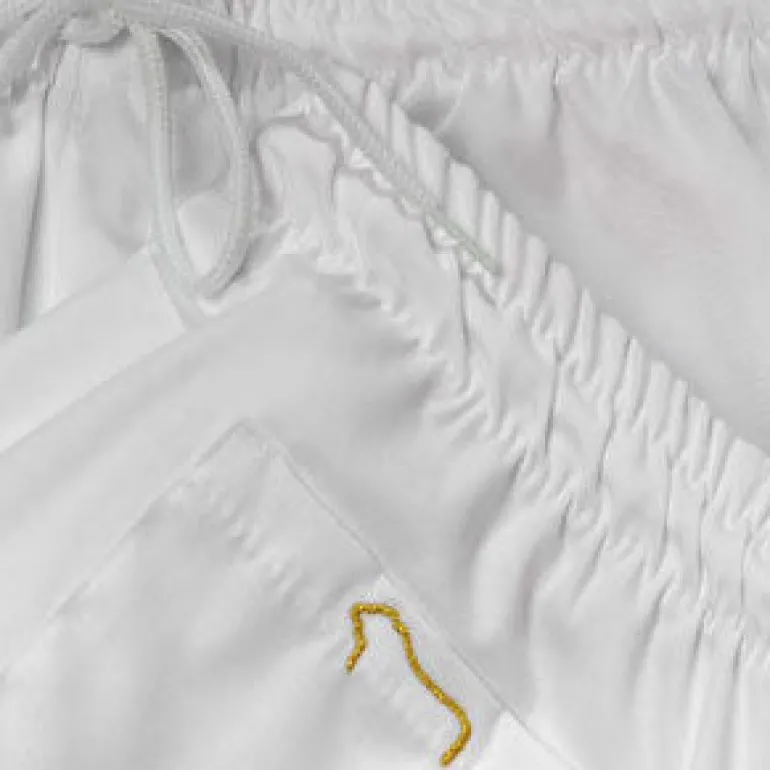 Il pantalone da cuoco Bembo ha un elegante ricamo Oro con logo Bembo sulla tasca, è in satin, antimacchia, con elastico e cordini per regolare la misura in vita. Il taglio è studiato per favorire un’ottima vestibilità e la massima comodità nei movimenti.