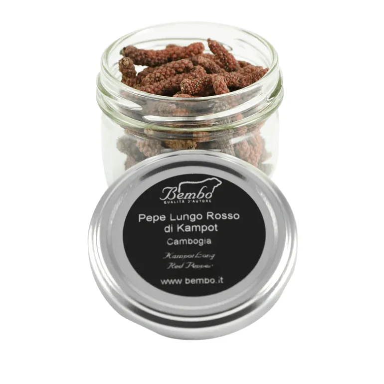 Il Pepe Rosso Lungo di Kampot è il pepe più aromatico del mondo. Grazie alla sua lunga maturazione al sole, ha acquisito un aroma fruttato in cui si possono percepire frutti di bosco, mele, rose.