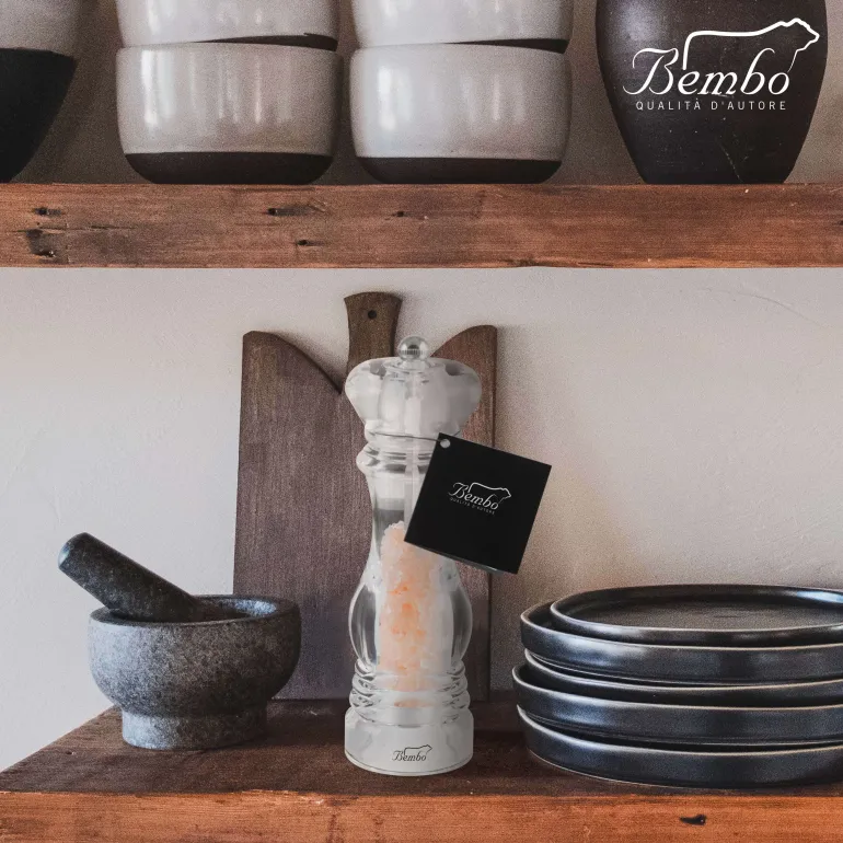 - CARATTERISTICHE E STRUTTURA: la Macina Pepe è alta 21 cm e ha una struttura in Polimero Termoindurito (comunemente utilizzato per uso odontoiatrico) trasparente. Formata da 2 pezzi: il corpo e la testa, uniti da un dispositivo di collegamento diretto alla macina in ceramica regolabile. La Macina Pepe Bembo è molto resistente: Antigraffio, antiossidante, trasparente, elegante, non richiede particolari manutenzioni.