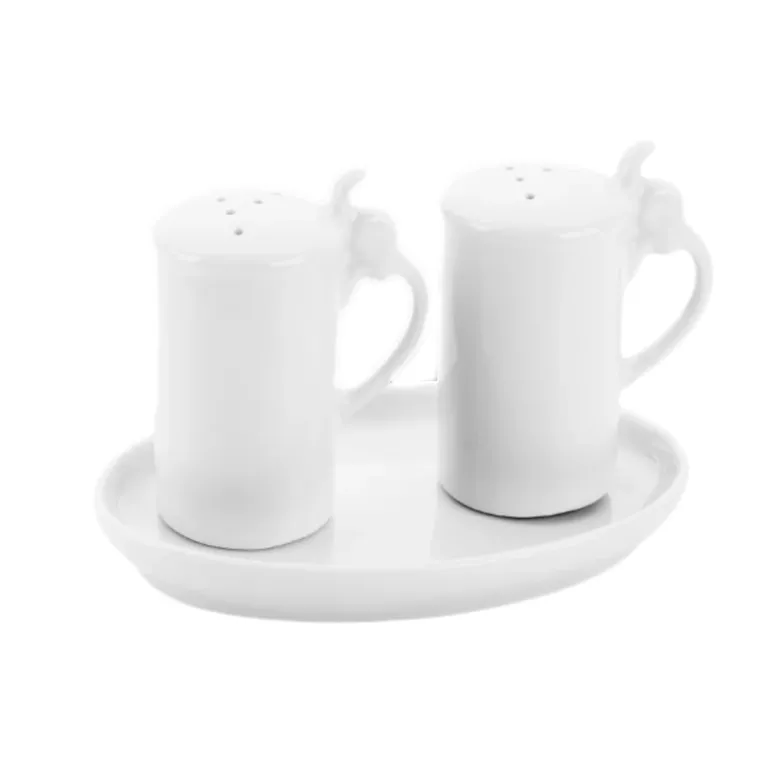 Elegante set sale e pepe in ceramica modello “Boccale” con vassoio.