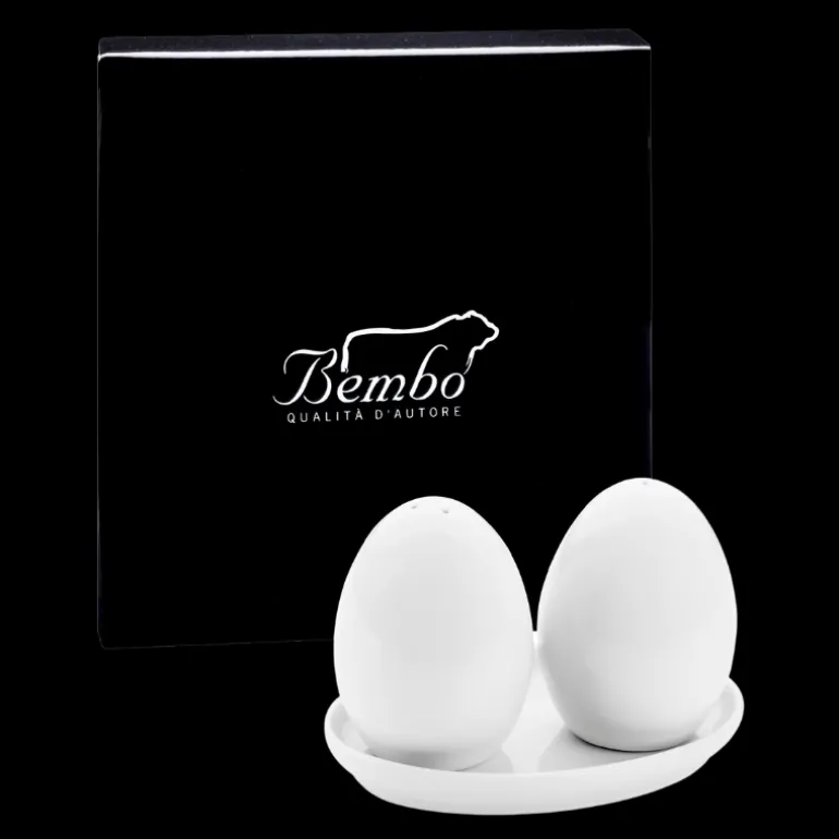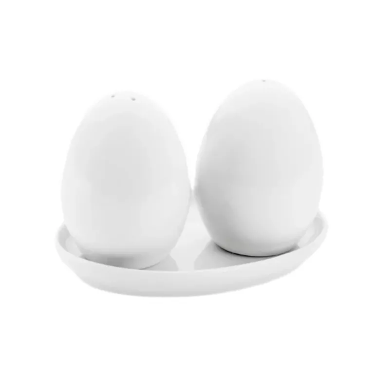 Elegante set sale e pepe in ceramica modello “Uovo” con vassoio.