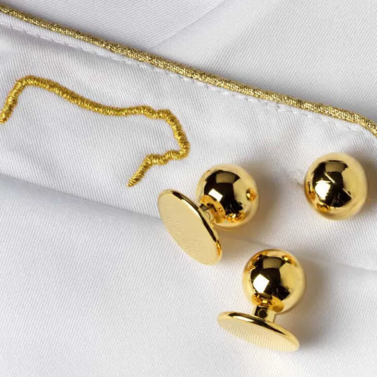 La giacca ha una linea perfetta, studiata per garantire la massima libertà nei movimenti, grazie ai pratici spacchi laterali, i bottoni, anch’essi argentati o dorati, sono intercambiabili, perché non cuciti ma applicati attraverso apposite asole doppie.