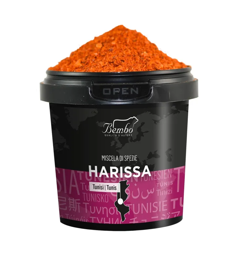 La Harissa è una salsa piccante originaria del Nord Africa, comunemente associata alla cucina tunisina e marocchina. È preparata principalmente con peperoncini rossi secchi, aglio, coriandolo, cumino marinati in olio d’oliva, ma possono esserci variazioni nella ricetta a seconda della regione. Ideali per carni alla griglia, pesce e verdure. È particolarmente apprezzata per il suo sapore intenso e speziato e la sua capacità di conferire un sapore piccante a qualsiasi piatto.