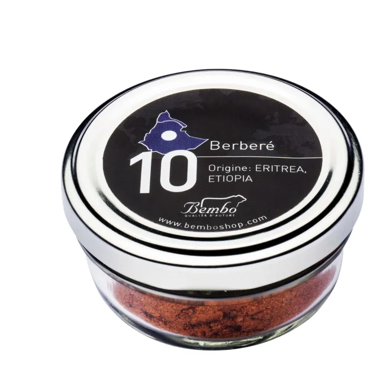 Berberé è il nome di un mix di spezie africane, utilizzato in Eritrea ed Etiopia per la preparazione del celebre piatto nazionale, lo spezzatino zighinì. La miscela include spezie dalle innumerevoli proprietà: cardamomo, peperoncino, zenzero, chiodi di garofano, coriandolo, pimento, ruta comune, ajowan, a volte anche pepe lungo e fieno greco. Esistono essenzialmente due tipi di Berberé: quello con fieno greco e quello con cardamomo. Il Berberé si può usare per speziare innumerevoli cibi e pietanze e per incrementare l’uso delle spezie in cucina, aiutando anche ad eliminare sale e grassi.