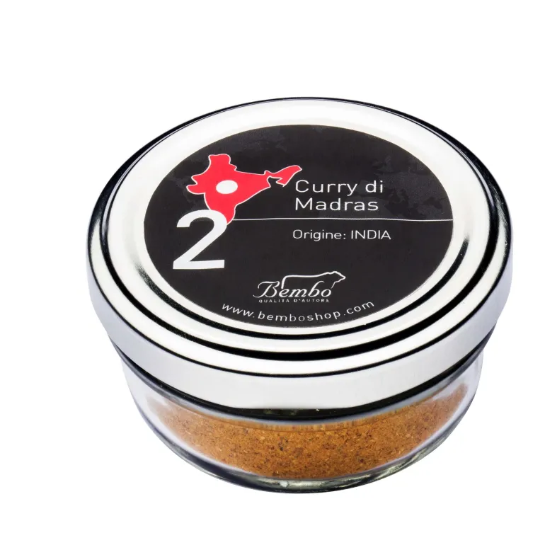 Questo Curry è talmente famoso da essere divenuto sinonimo stesso della parola Curry nel mondo. Madras è l’antico nome della città di Chennai, nell’India sud orientale. È un Curry deciso che, a seconda della quantità di peperoncino, può essere più o meno piccante. Il sapore prevalente è quello della curcuma: secco e avvolgente. Seguono, poi, le note speziate e particolari della senape e del pepe, esaltate dalla leggera affumicatura della paprica. Il cardamomo, con il suo aroma floreale, completa la miscela.