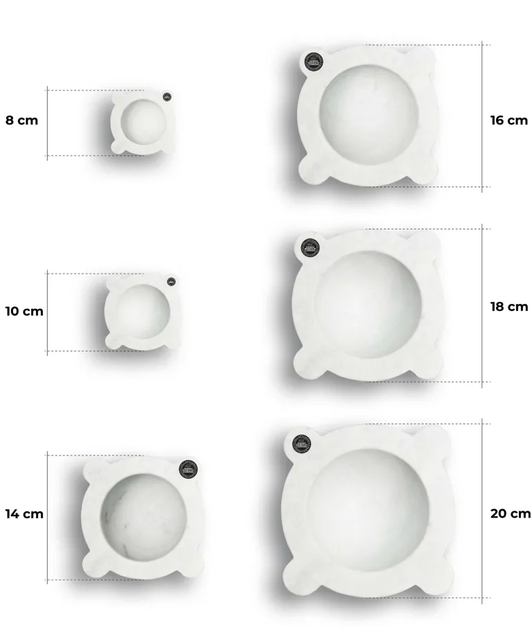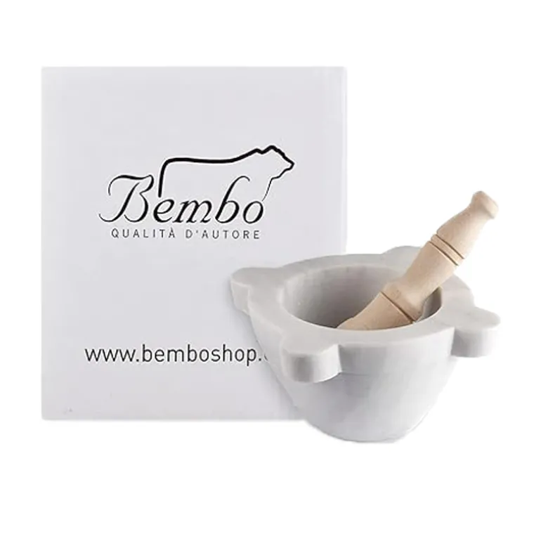 Bembo vi propone una linea di mortai in Marmo di Carrara perfettamente lisci e lavorati a mano, secondo il modello genovese. Il prodotto si presenta incorniciato da un elegante e raffinato packaging in grado di esaltare il prodotto, quindi ideale anche come regalo.