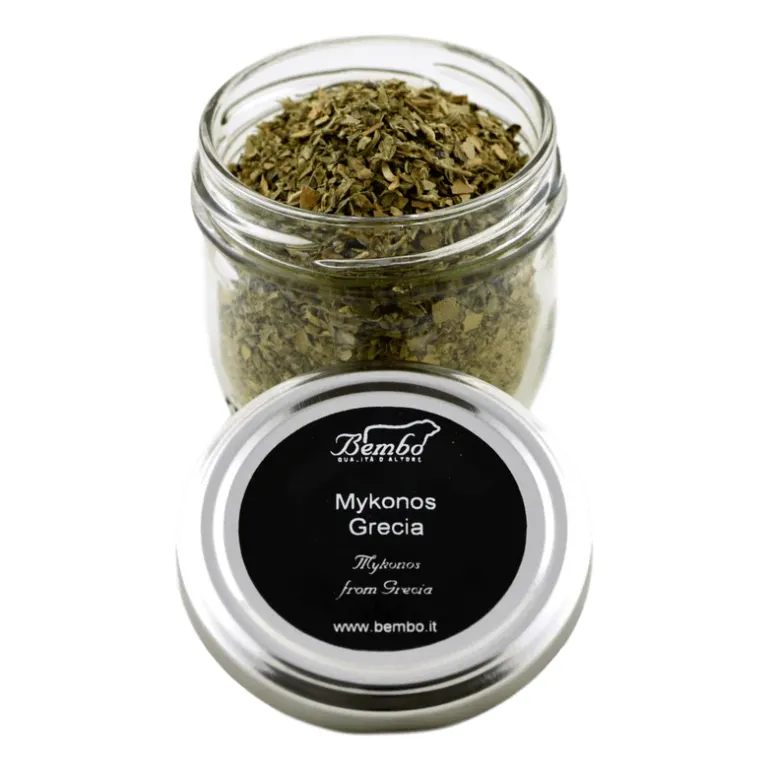 La miscela di erbe Mykonos è stata inventata negli anni ’60. Sembra che uno degli chef dello yacht di Aristotele Onassis, in occasione della prima visita di Jacqueline Kennedy che sarebbe poi diventata moglie dell’armatore greco, preparò questo mix per condire un’insalata di carote, cetrioli e pomodori di cui Jacqueline era ghiotta. Gli invitati ne furono così entusiasti che ben presto la ricetta fece il giro del mondo. Questa miscela racchiude in un bouquet aromatico tutti i profumi del Mediterraneo.